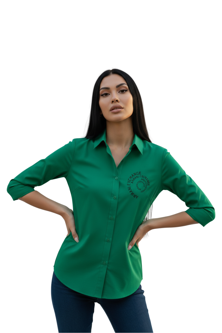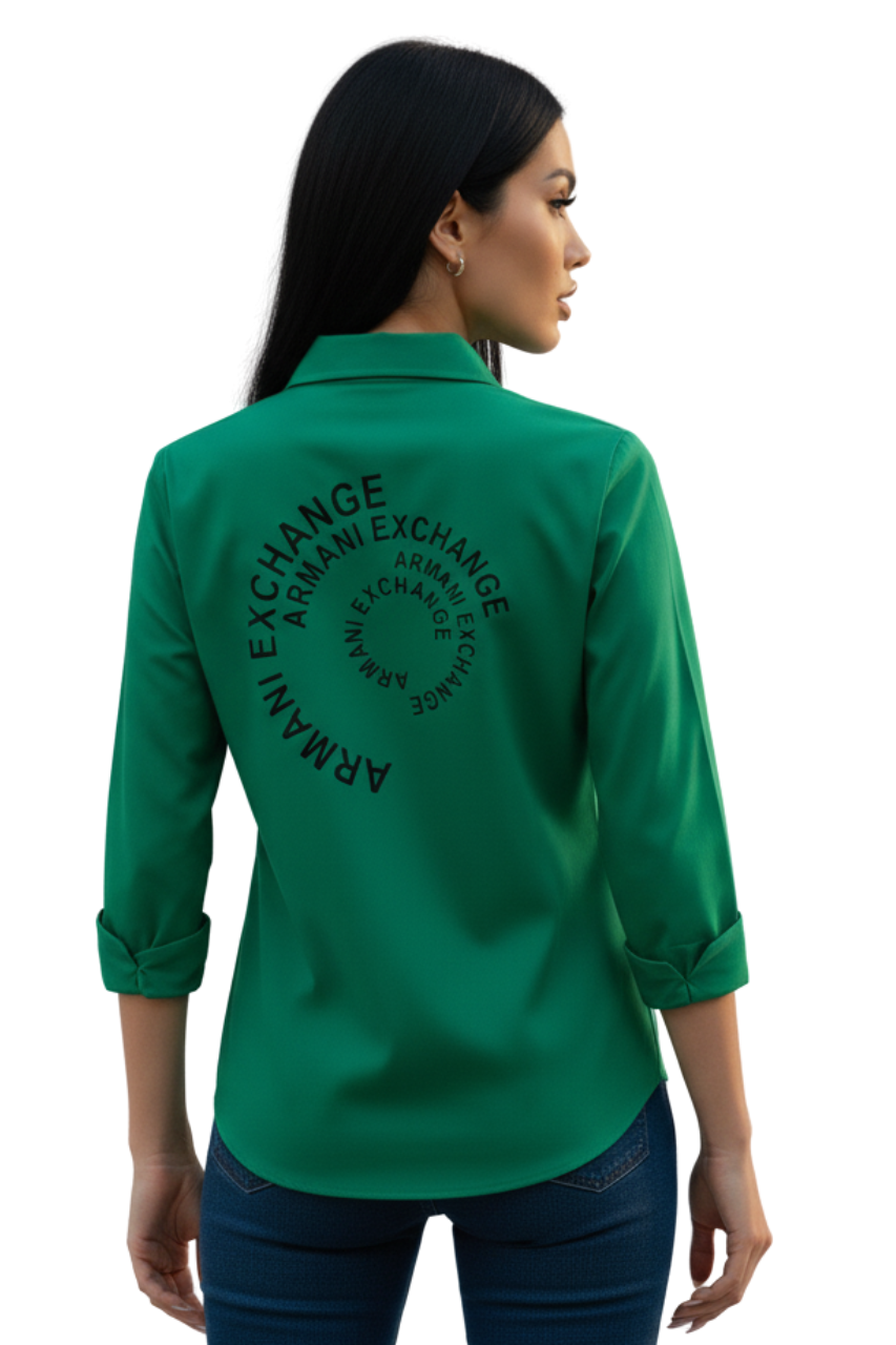 Make a bold style statement with this Armani Exchange Spiral Logo Shirt, available in crisp white and vibrant green. Featuring the signature Armani Exchange circular logo print on the chest and across the back, this shirt combines modern streetwear energy with sleek sophistication. Designed with a sharp collar, button-down front, and rolled sleeves for a relaxed yet polished fit, it’s the perfect piece to elevate your smart-casual wardrobe. Pair it with jeans or tailored trousers for versatile, everyday luxury.