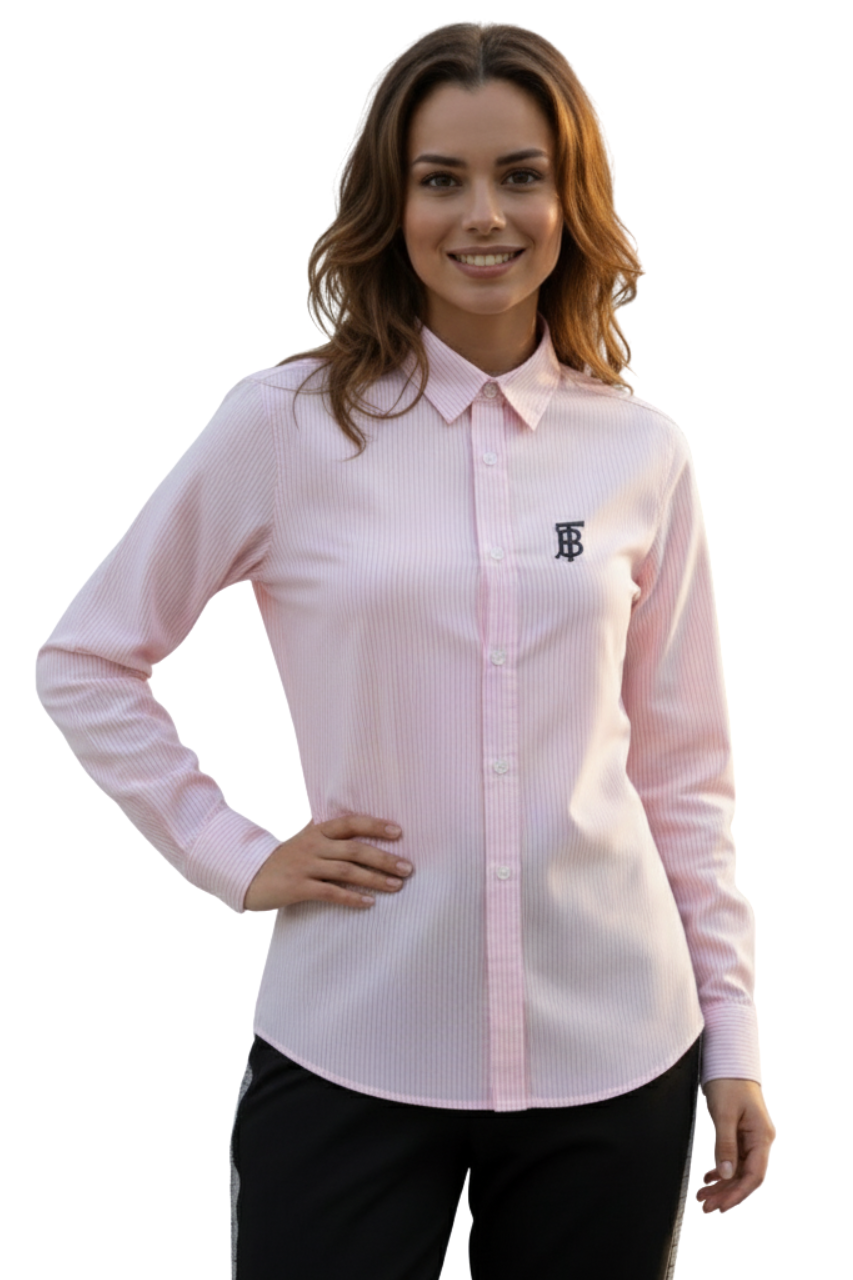 Step into timeless elegance with this authentic Burberry TB Monogram Shirt. Featuring the iconic embroidered Thomas Burberry logo, this piece blends heritage style with modern sophistication. Designed with a classic button-down front, sharp collar, and a flattering tailored fit, it’s perfect for both smart casual looks and elevated everyday wear. A versatile luxury essential that captures Burberry’s signature British craftsmanship.