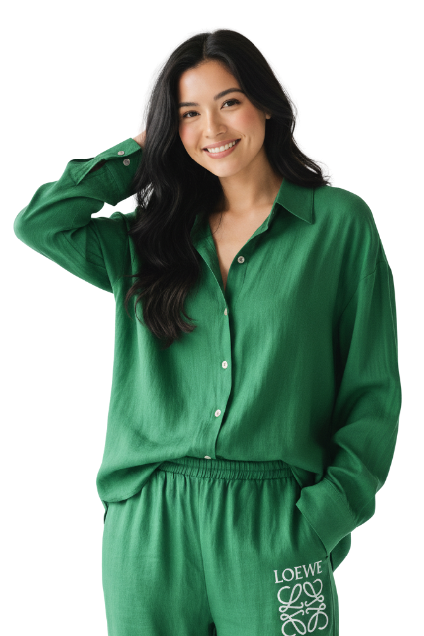 Elevate your casualwear with this Loewe two-piece Linen set, designed for both comfort and effortless style. Featuring a relaxed-fit button-down shirt with the iconic Loewe logo on the back and matching wide-leg pants with an elastic waistband, this set is perfect for laid-back days, travel, or stylish streetwear.