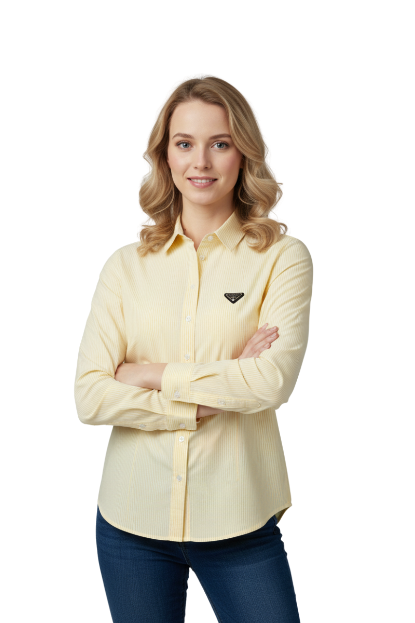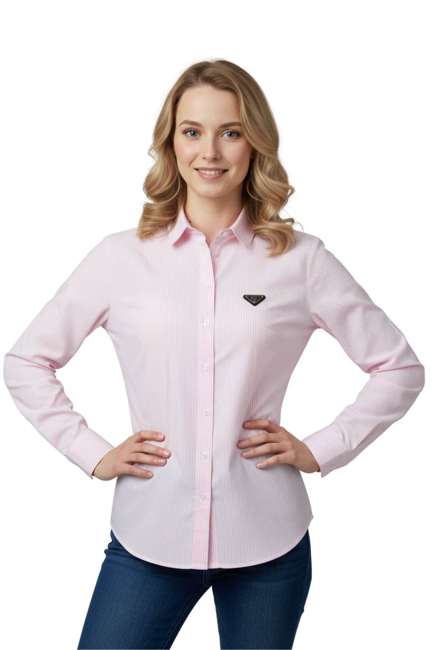Elevate your style with the iconic Prada Triangle Logo Shirt, available in refined shades of blue, pink, and yellow. Designed with delicate pinstripes and Prada’s signature enamel triangle logo, this shirt blends modern elegance with timeless tailoring. Featuring a crisp collar, button-down closure, and a flattering slim fit, it’s a versatile piece that transitions seamlessly from office wear to chic casual outings. A true statement of Italian craftsmanship and luxury fashion.